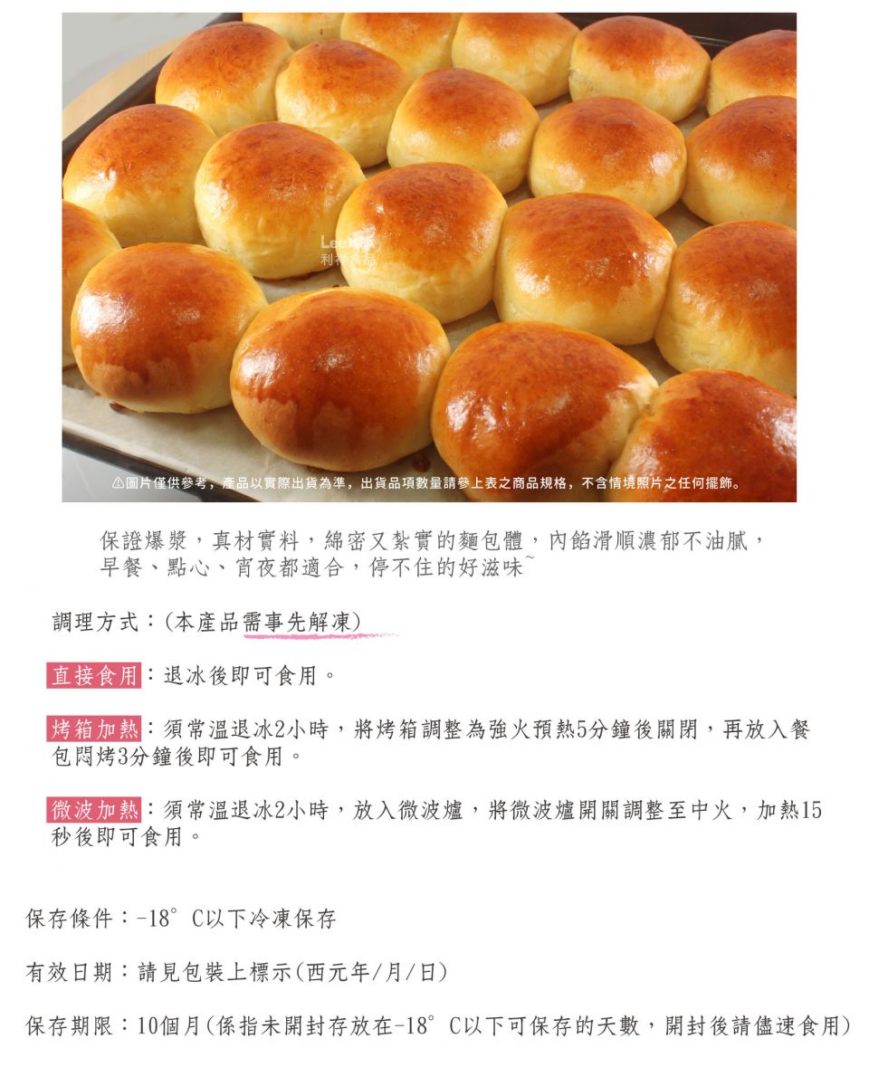 產品簡介:保證爆漿,真材實料,綿密又紮實的麵包體,內餡滑順濃郁不油膩, 早餐、點心、宵夜都適合,停不住的好滋味~