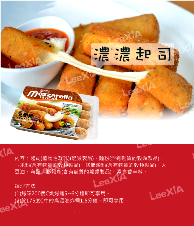 產品簡介:<蛋奶素>濃濃起司香、讓你一口接一口,長長的香濃芝心絲,實在過癮。