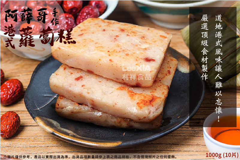 產品簡介:道地港式蘿蔔糕,100%純手工製作、真材實料,阿薛哥的用心您吃的到!