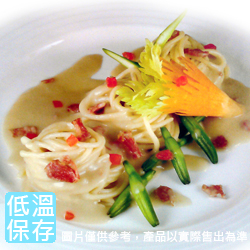 產品簡介:濃郁的奶香的白醬和肉香四溢的煙燻培根,蒜香、肉香、醬汁和麵條在口中交織成香醇滋味。