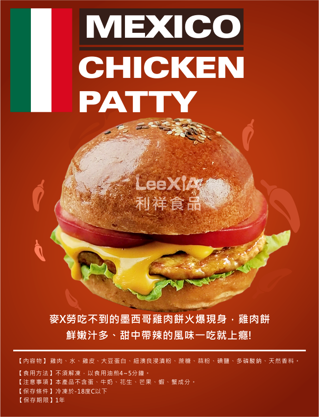 產品簡介:麥X勞吃不到的墨西哥雞肉餅火爆現身,雞肉餅鮮嫩汁多、甜中帶辣的風味讓一試就上癮!