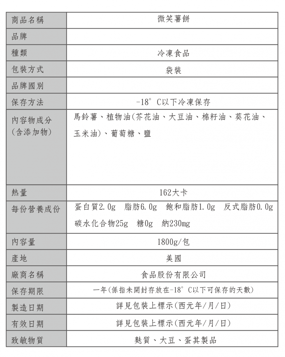 產品簡介:因全球航運不穩、原物料短缺、通膨因素,薯製品規格皆以實際到貨為準,需求種類請電洽服務人員。