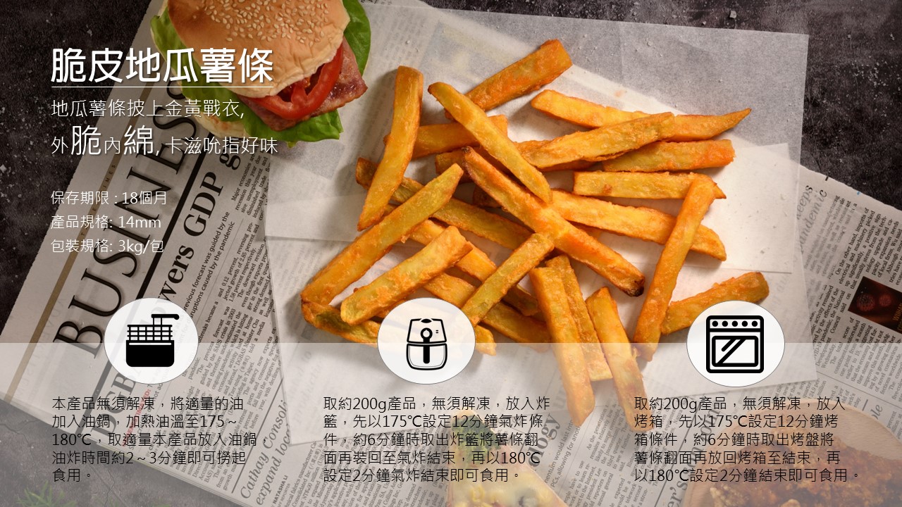 產品簡介:*地瓜薯條披上金黃戰衣。